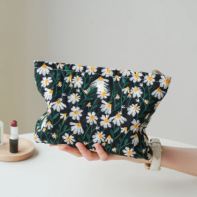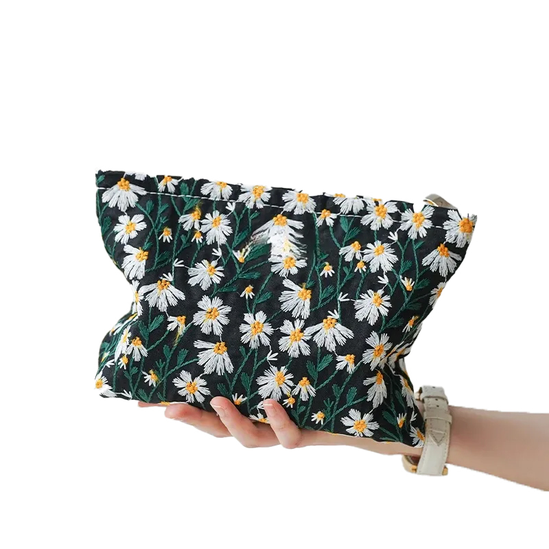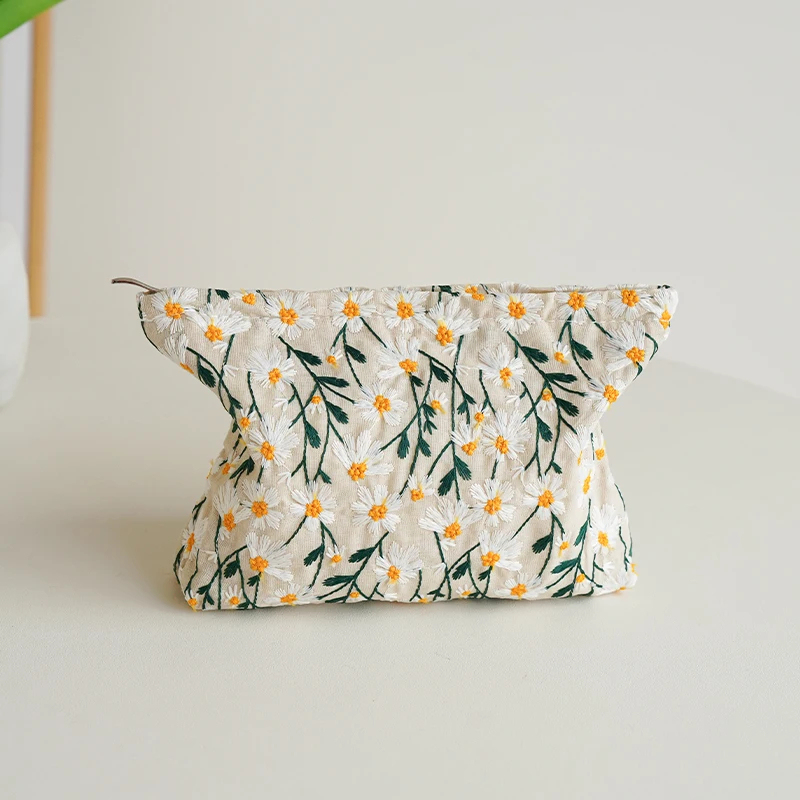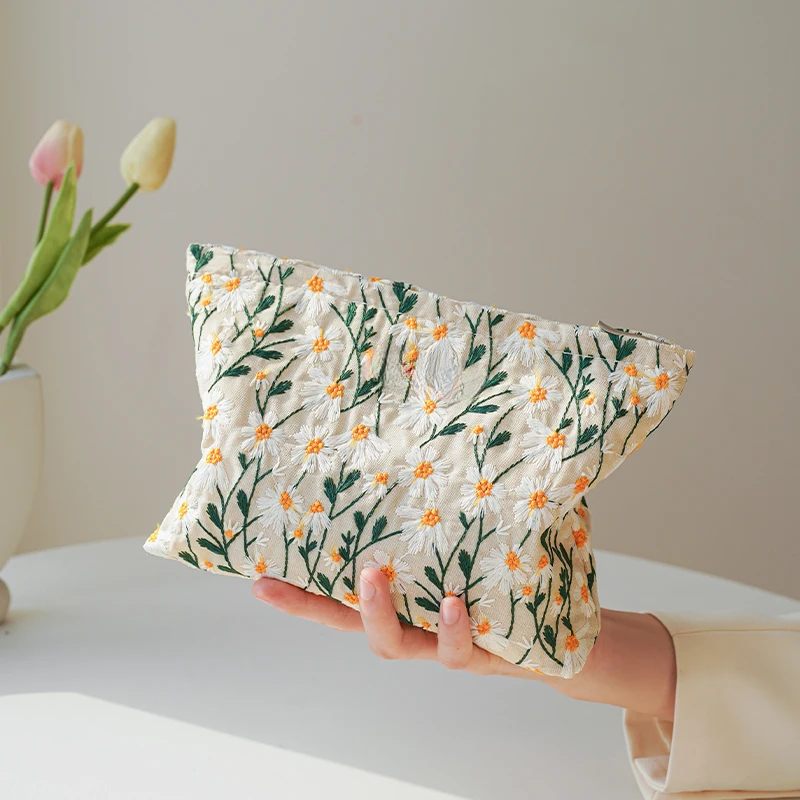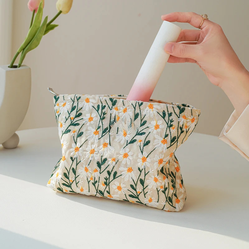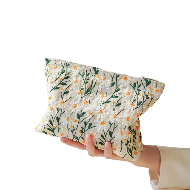 White Embroidery Cosmetic Bag - Lipstick & Coin Purse